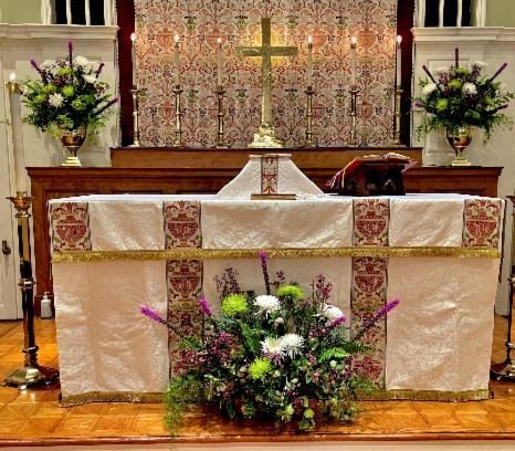 The mission of the Flower Guild is to enhance the worship service and glorify God with thanksgiving by sharing His bounty of beautiful flowers to adorn the sanctuary. Weekly: The generosity of the congregation allows for fresh flowers to be placed in the sanctuary every Sunday through their dedications and donations. To dedicate altar flowers for future services, sign the book in the narthex on a table near the double doors. These flowers are provided by K Mike Whittle Designs. Special Occasions: The flower guild flowers the church with yard greens, yard flowers, and purchased flowers - Lenten sticks and Easter flowers - St. James Day flowers - Advent greens, Christmas flowers through Epiphany Members plan the designs, prepare and arrange the flowers, clean up and construct arrangements to be taken to shut-ins by the Flower Delivery team. No flower arranging experience is needed ... just a desire to beautify the sanctuary, a willingness to learn, and a desire for joyful fellowship.
